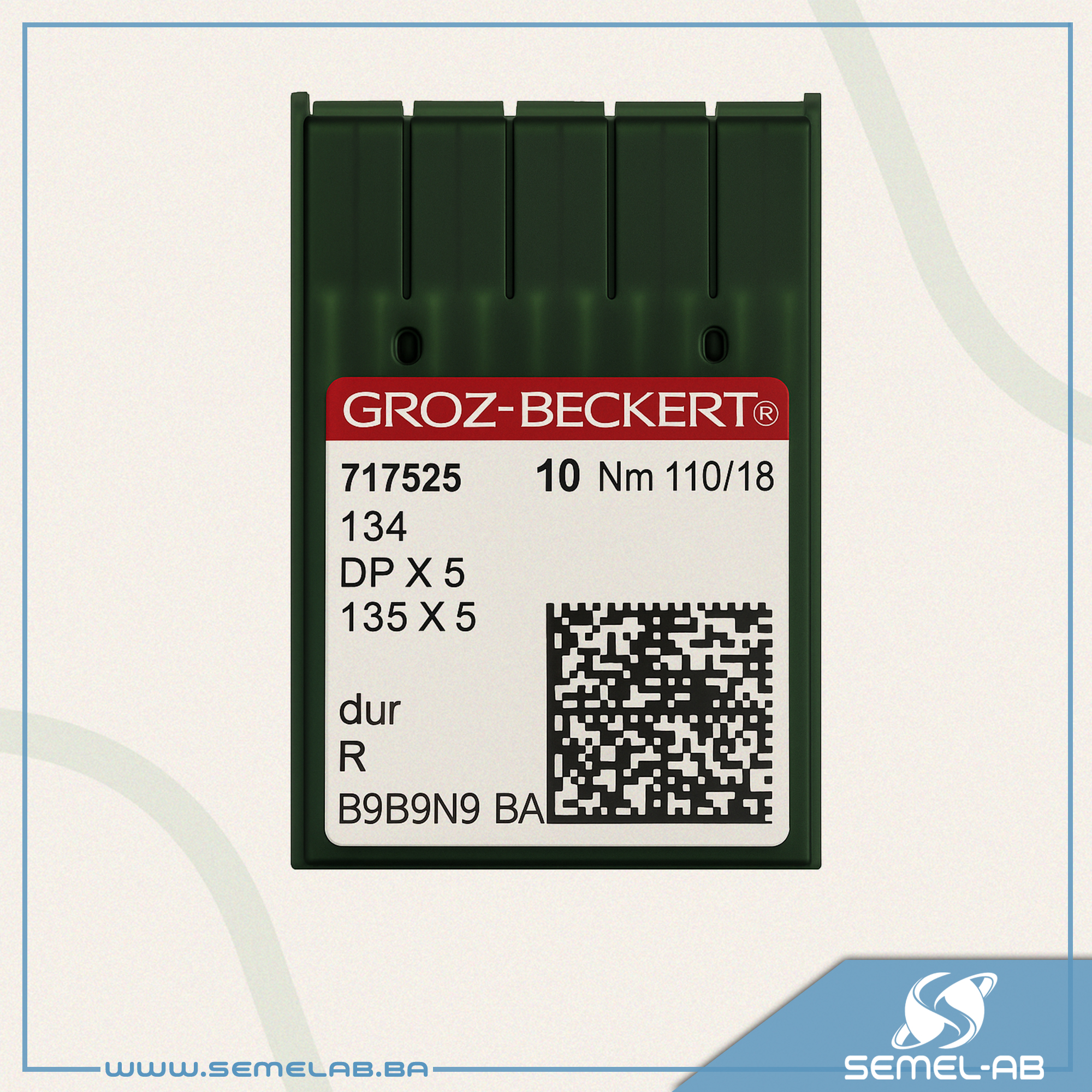 Ovo je originalno pakovanje Groz-Beckert industrijskih šivaćih igala, namenjenih za industrijske mašine za šivenje koje koriste sistem 134 / DPx5 / 135×5.